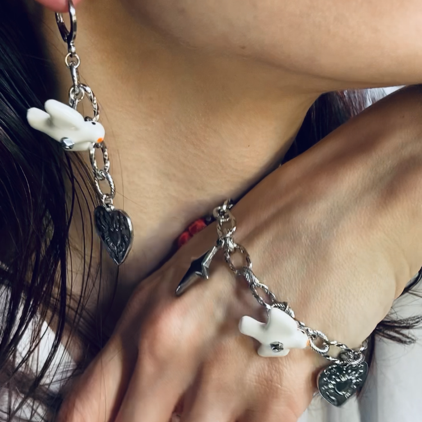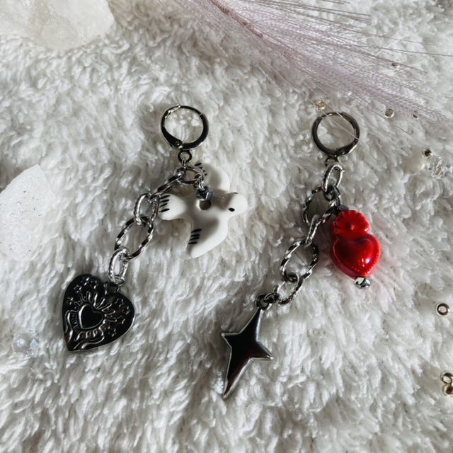 ✨ En acier inoxydable, cœur et colombe en porcelaine